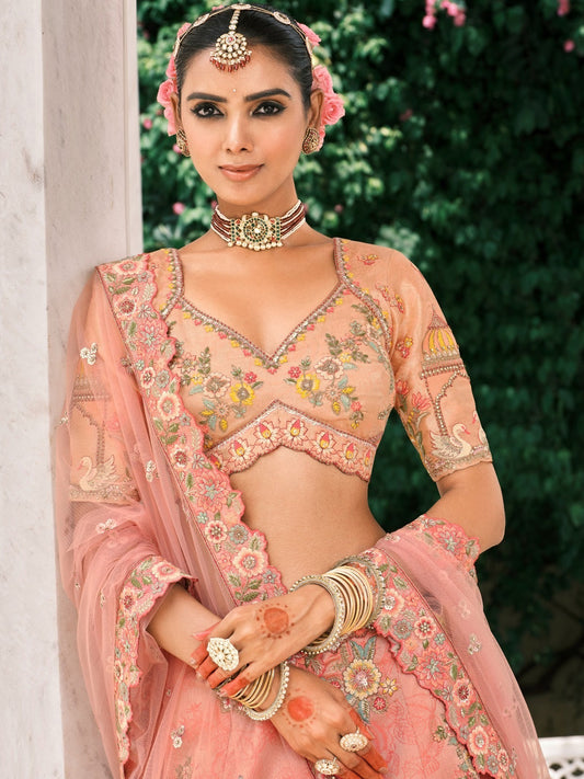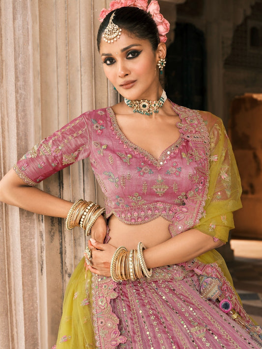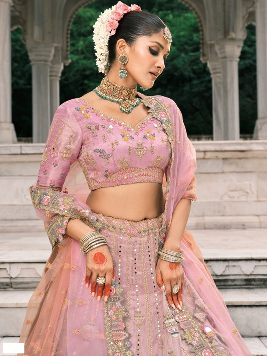 Silk Traditional Reception Wedding Lehenga In Pink color-41115