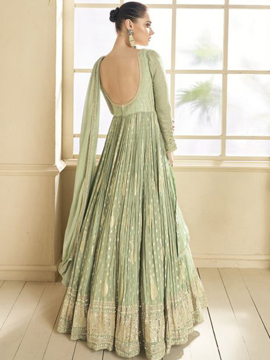 Silk Jacquard Festive Semi Stitched Gown in Green with Zari work-750062