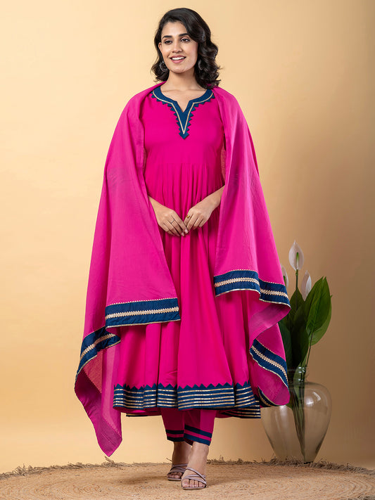 Pink Anarkali Premium Rayon Kurta Pant Set with Cotton Dupatta–3 Piece Ready to Wear Salwar Kameez Suit Set-750125