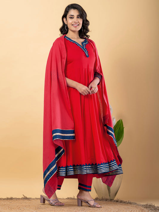 Red Anarkali Premium Rayon Kurta Pant Set with Cotton Dupatta–3 Piece Ready to Wear Salwar Kameez Suit Set-750127