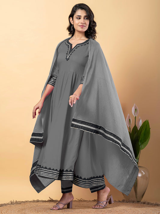 Grey Anarkali Premium Rayon Kurta Pant Set with Cotton Dupatta–3 Piece Ready to Wear Salwar Kameez Suit Set-750126