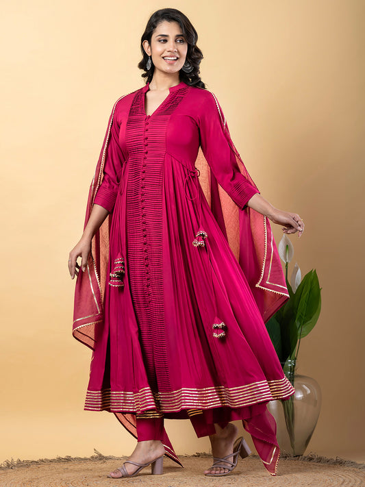 Red Anarkali Premium Rayon Kurta Pant Set with Cotton Dupatta Designer–3 Piece Ready to Wear Salwar Kameez Suit Set-750148