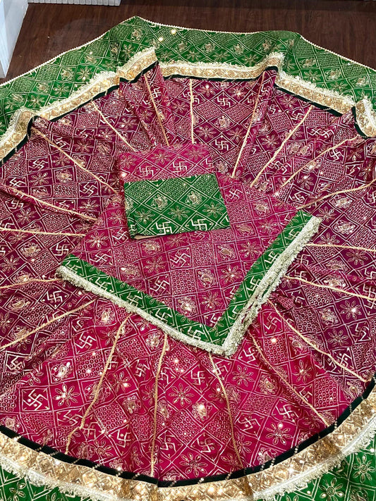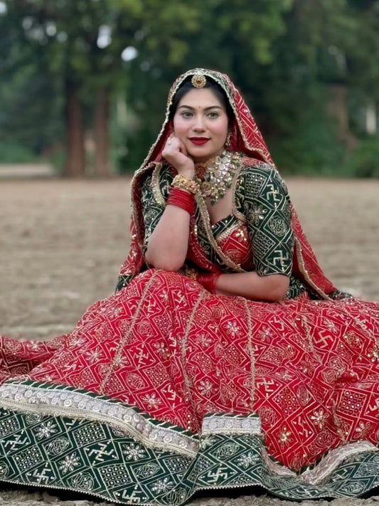 Designer Gorgette 13 meter full Gher Premium quality Stitched Rajasthani Lehenga Choli in red and Green color-91347