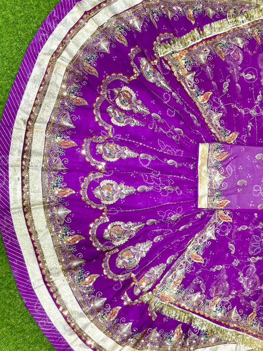 Designer Gorgette 7 meter full Gher Premium quality Rajputi Poshak in Purple-91248