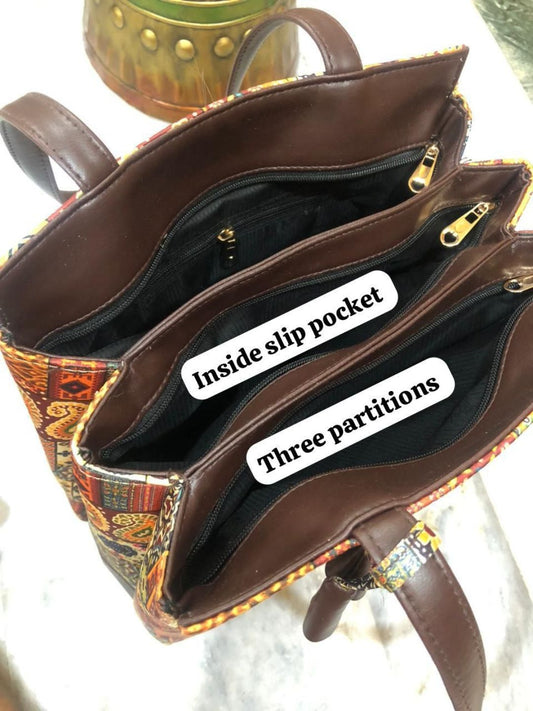 Brown-Colored Polyester prints Cotton Triple partition Oversized Shopper Tote Bag-40904