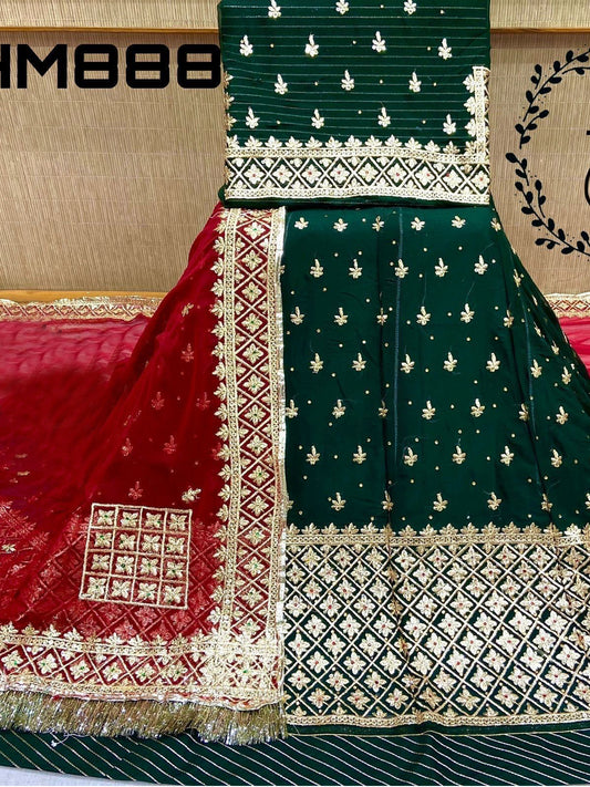 Zari Stone Touch Humrahi Pure Wedding Sangeet Rajputi Poshak In Green Color-61152