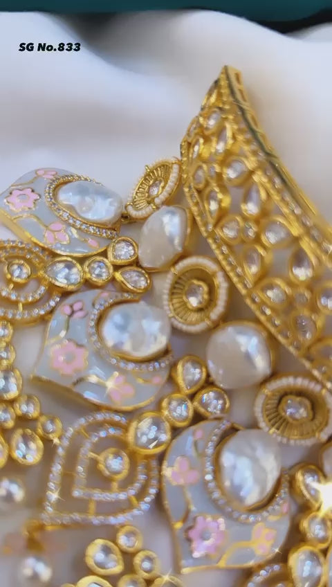 Golden and White Beads Studded Handcrafted Brass Kundan Bridal Jewellery Set-81403