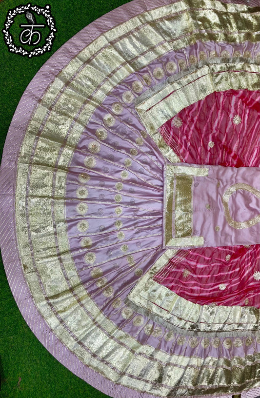 50 Kali Full Gher Beutifull Designer Silk Wedding Sangeet Seekiya Gotta Work Rajputi Poshak In Pink Color