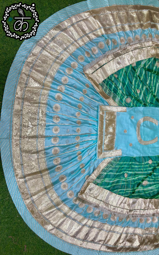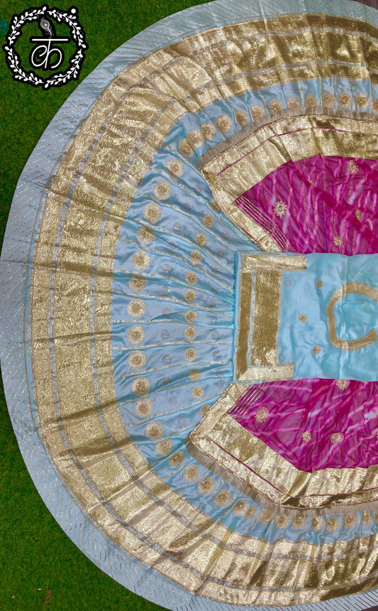 50 Kali Full Gher Beutifull Designer Silk Wedding Sangeet Seekiya Gotta Work Rajputi Poshak In Blue Color