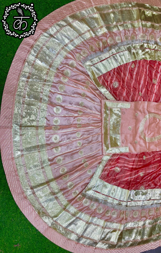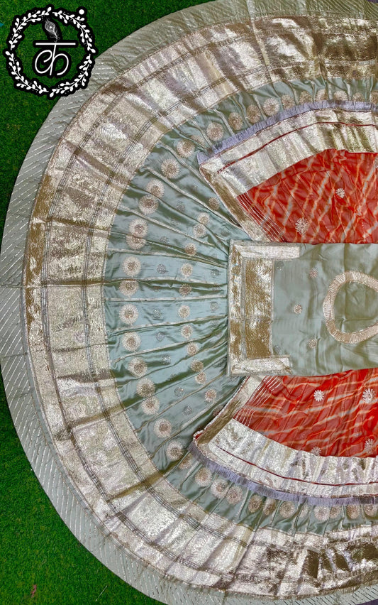 6 Meter Full Gher Soft Satin Wedding Traditional Rajputi Poshak with Seekiya Gotta Work In Light Color-61105