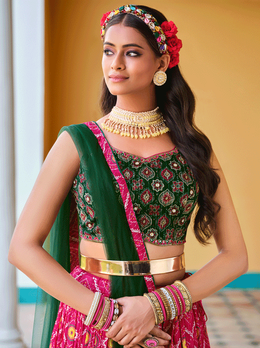 Stone Velvet Bridal Wedding Lehenga in Pink