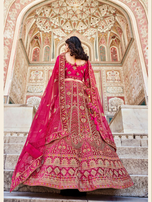 Embroidered Net With Banglori Silk Bridal Lehenga in Pink-90998