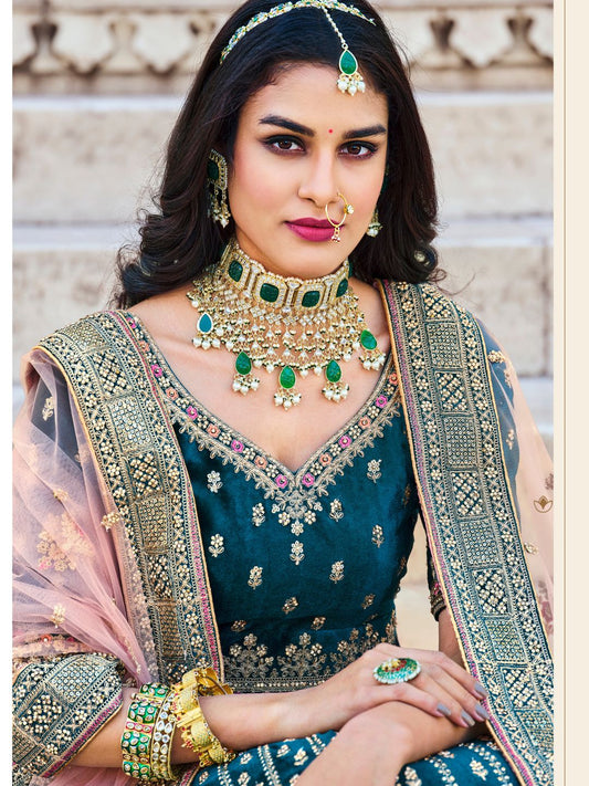 Stone Velvet Bridal Wedding Lehenga in Blue