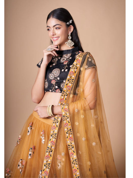 Sequence Net Bollywood A Line Lehenga in Yellow