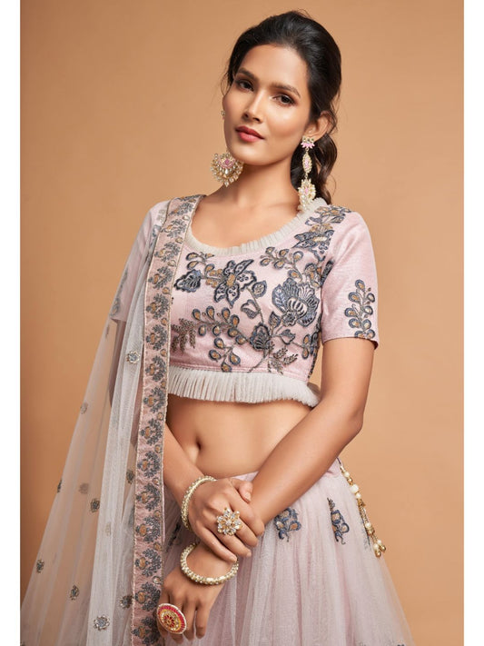Sequence Net Bollywood A Line Lehenga in Light Blue
