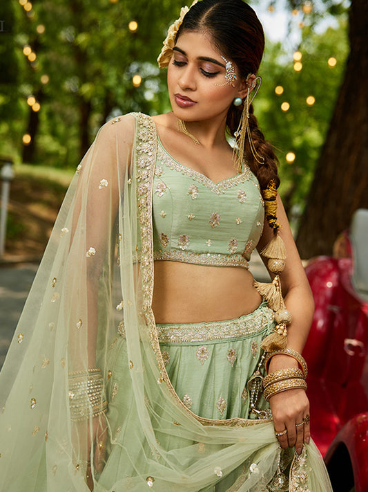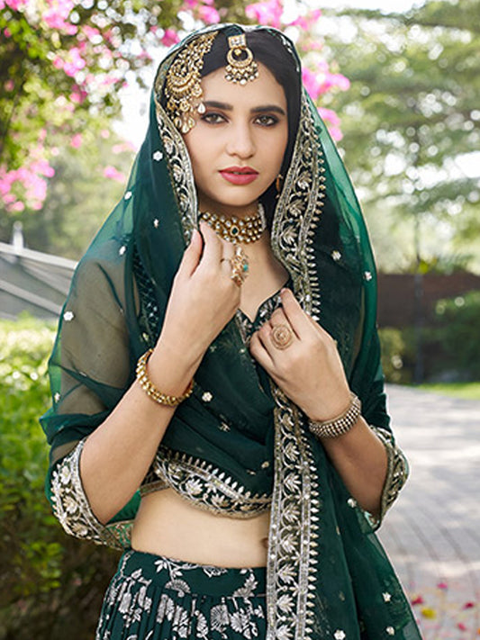 Chinnon Traditional Reception Wedding Lehenga In Green color-41069