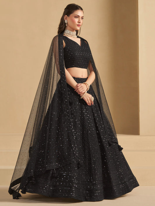 Georgette Gliterring Reception Sangeet Semi-Stitched Lehenga Choli -40994