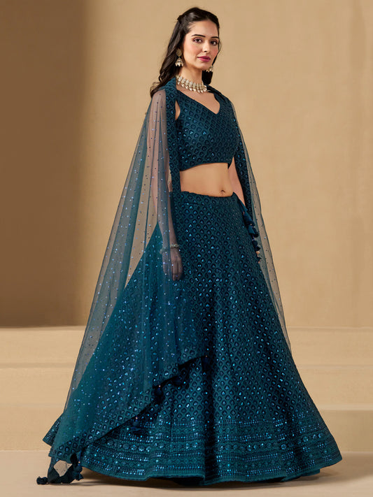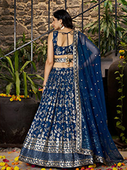 Georgette Traditional Reception Semi-Stitched Lehenga Choli In Blue color-40985