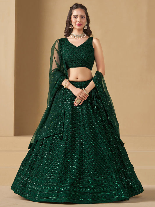 Georgette Traditional Reception Semi-Stitched Lehenga Choli In Green color-41008