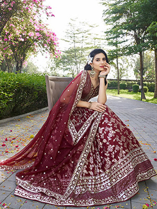 Dola Silk jacquard Traditional Reception Semi-Stitched Lehenga Choli In maroon color-61135