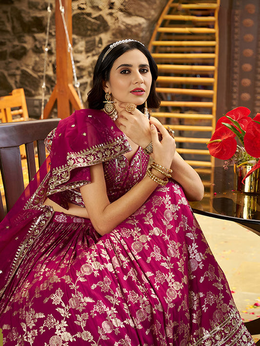 Dola Silk jacquard Traditional Reception Semi-Stitched Lehenga Choli In Pink color-81155