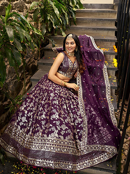 Georgette Traditional Reception Semi-Stitched Lehenga Choli In Purple color-41009