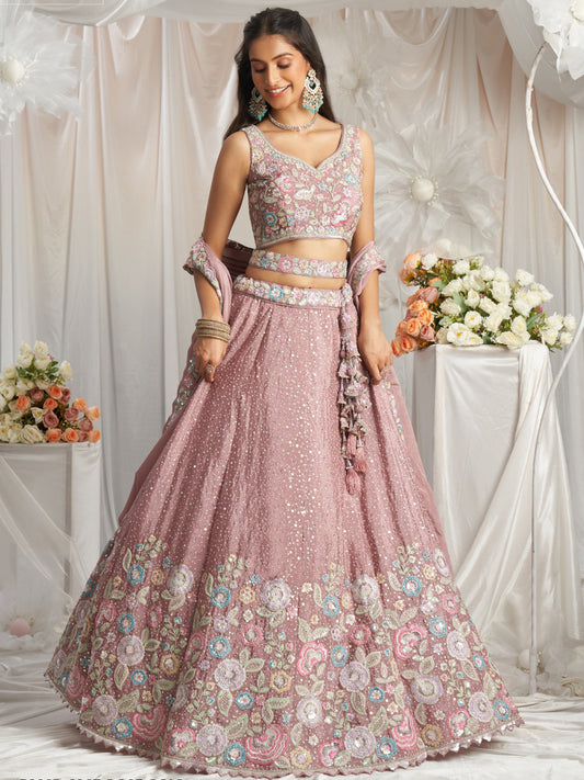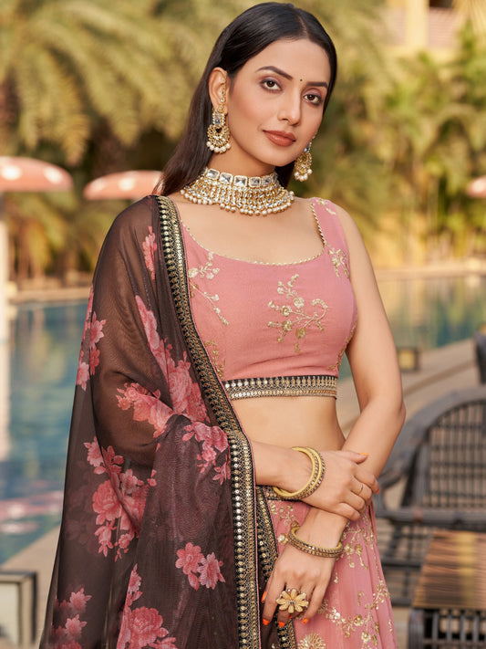 Georgette Traditional Reception Semi-Stitched Lehenga Choli In pink color-40991
