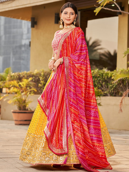 Georgette Traditional Reception Semi-Stitched Lehenga Choli In Yellow color-40983