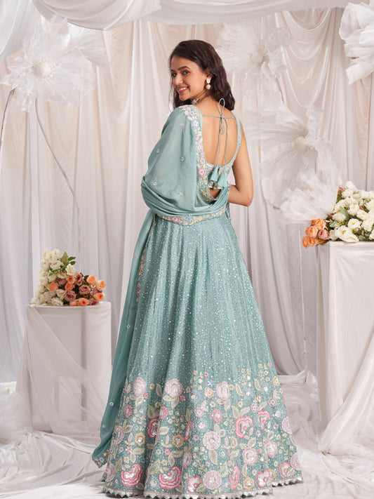 Chiffon Traditional wedding sangeet Semi-Stitched Lehenga Choli In Blue color-40979