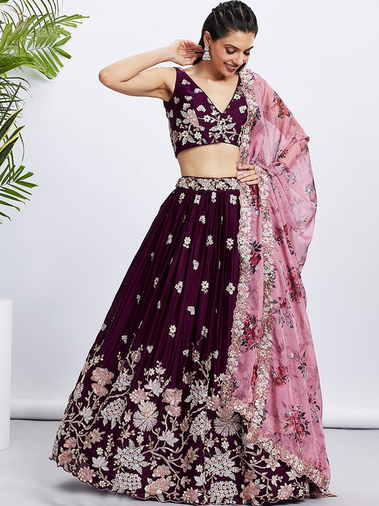 Georgette Traditional Reception Semi-Stitched Lehenga Choli In Purple color-40980
