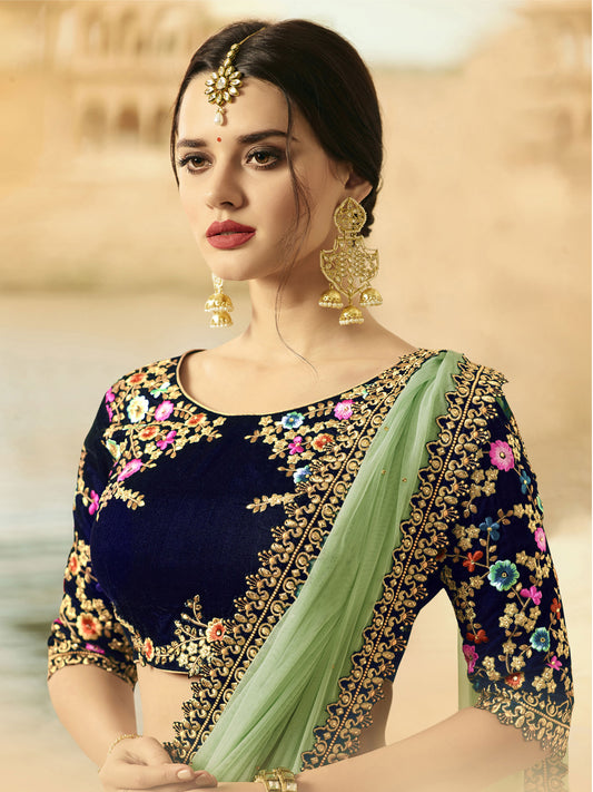 Embroidered Velvet Sangeet, festive Lehenga in Blue color-82096
