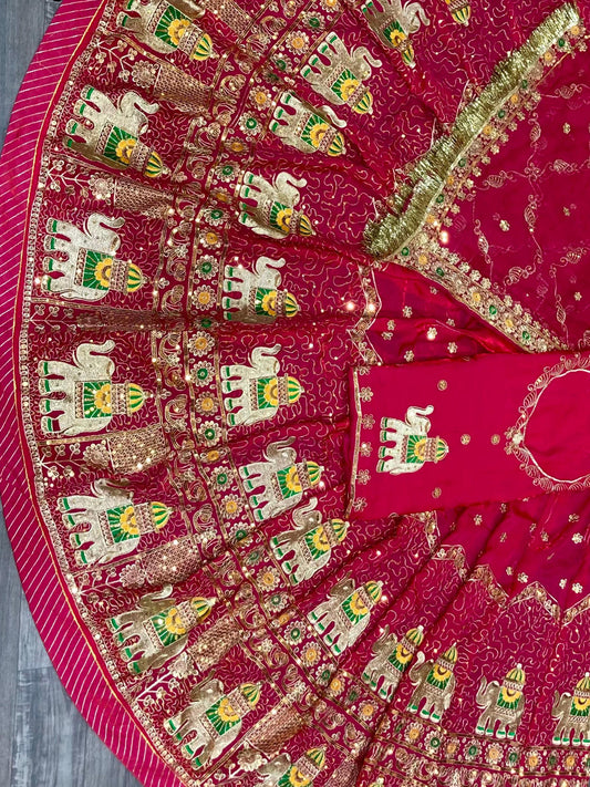 Red color Fendi Silk Premium quality Rajputi Poshak with fancy sequence Work-91693