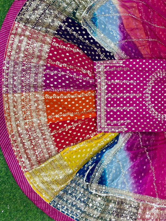 Georgette 7 Miter full Gher Double color Wedding Sangeet Premium quality Rajputi Poshak-91132