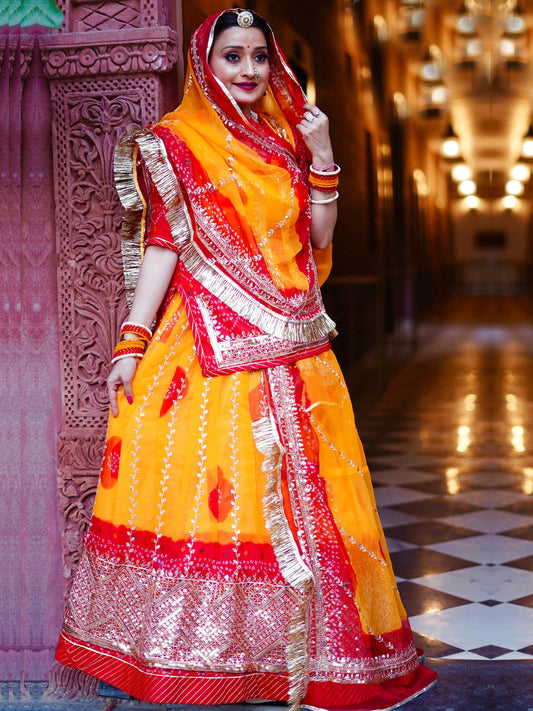 Banarasi 32 Kali Brighter Double color Premium quality Rajputi Poshak-91213