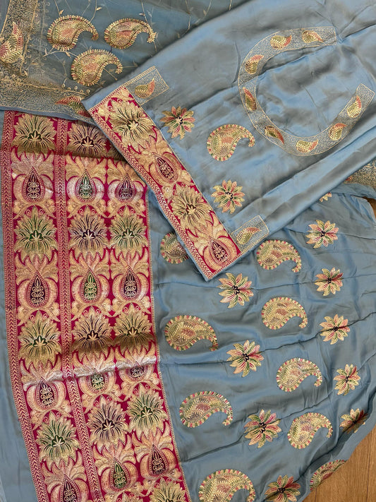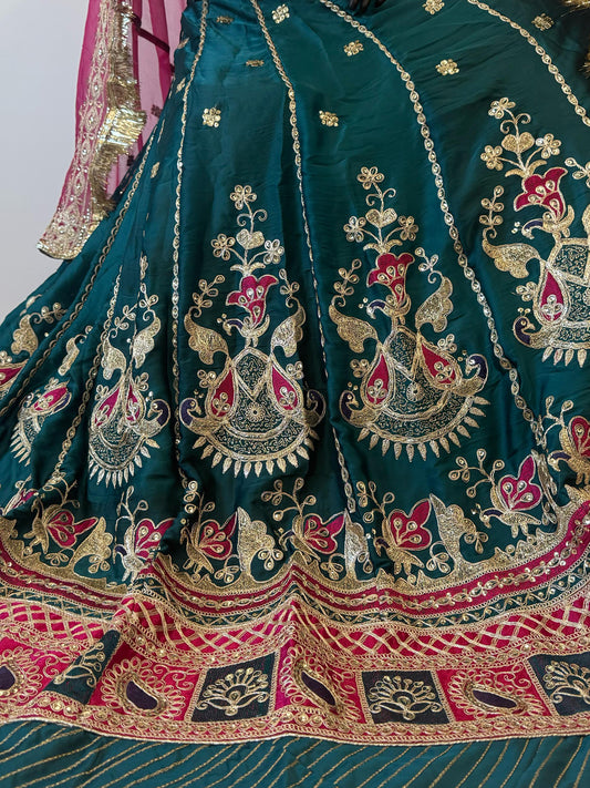 Double shaded Satin Wedding Sangeet Sequence Border Work Rajputi Poshak-91183