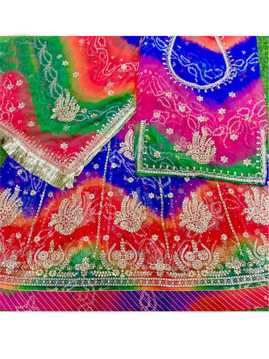 Bandhani Print Pachrangi Festive Zari Kundan Work Rajputi Poshak In Multicolour Colour-61021