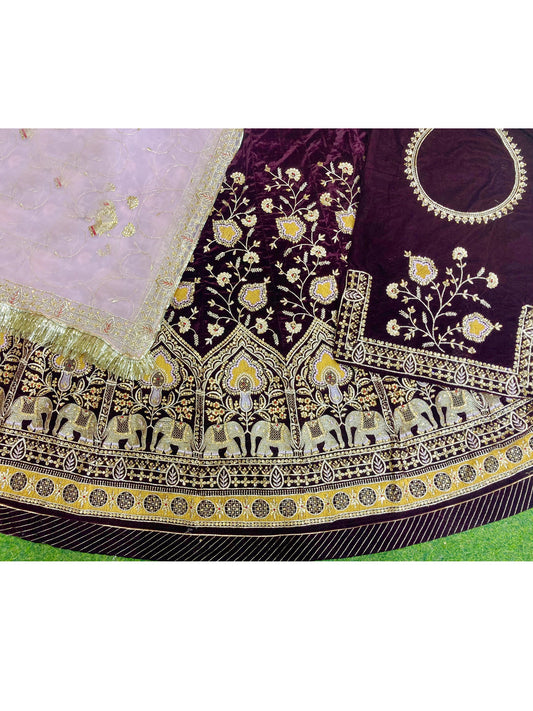 Velvet and Humarai Pure Wedding Sangeet Zari Work Rajputi Poshak In Wine Color-61142