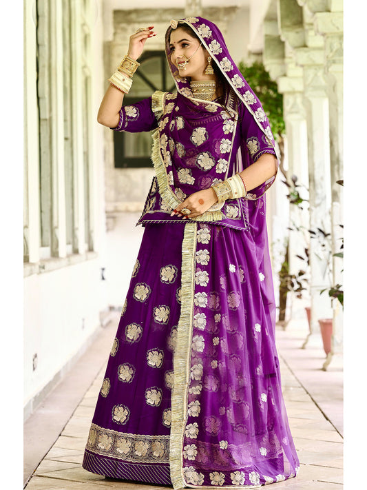 Humarahi Pure Wedding Traditional Rajputi Poshak with Barik kasab Work In Purple Color-61113