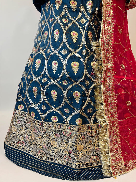 4 Meter Full Gher Satin Humarahi Pure Wedding Traditional Rajputi Poshak with Seekiya Gotta work-81763
