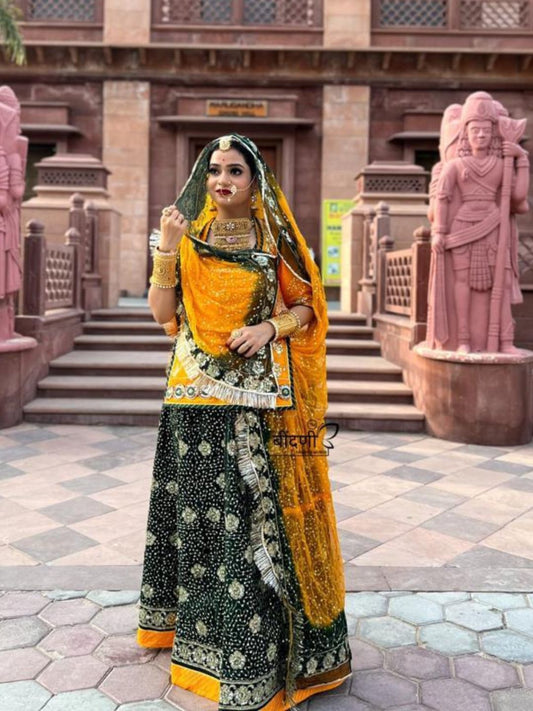Green Yellow Humrahi Pure Haldi Sangeet Rajputi Poshak