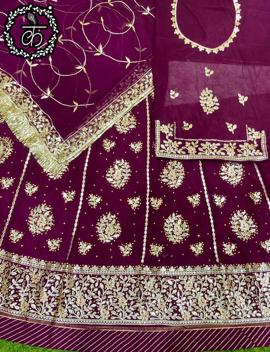 Half Pure Wedding Sangeet Fancy Gotta patti Rajputi Poshak In Purple Colour-81158