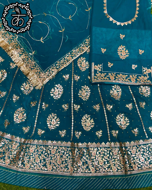 Half Pure Wedding Sangeet Fancy Gotta patti Rajputi Poshak In Blue Colour-81160