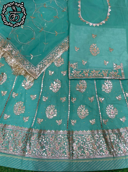 Half Pure Wedding Sangeet Kundan work Rajputi Poshak In turquoise Colour-61045