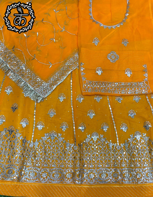 Half Pure Wedding Sangeet Fancy Gotta patti Rajputi Poshak In Yellow Colour-81161