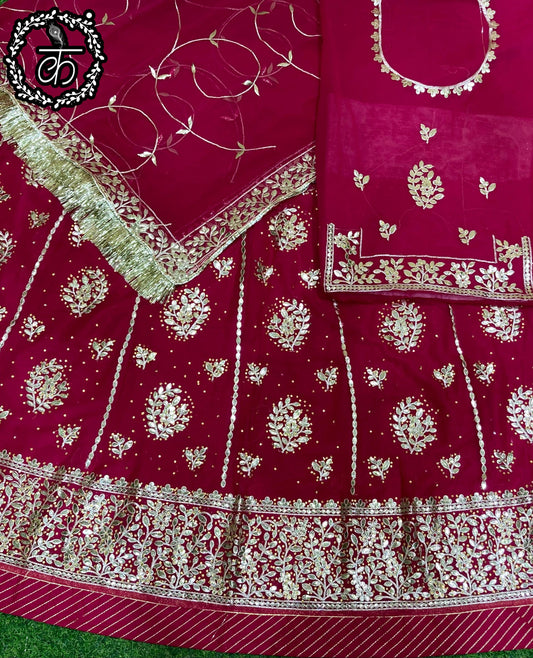 Half Pure Wedding Sangeet Fancy Gotta patti Rajputi Poshak In Rani Colour-81164