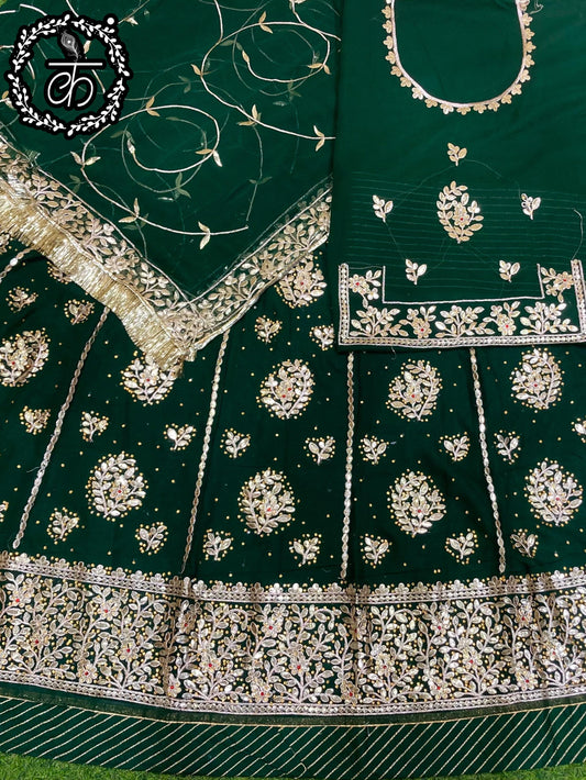 Half Pure Wedding Sangeet Fancy Gotta patti Rajputi Poshak In Green Colour-81163
