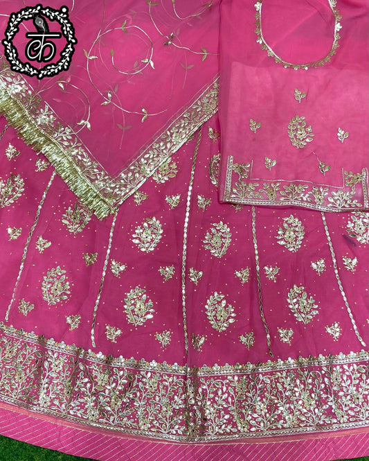 Half Pure Wedding Sangeet Fancy Gotta patti Rajputi Poshak In Pink Colour-81162