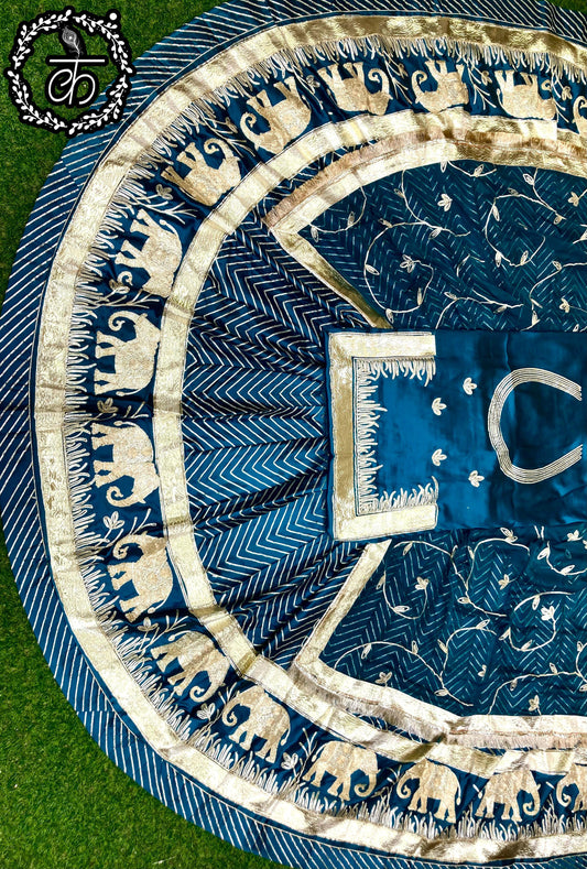 4 Meter Full Gher Satin Humarahi Pure Wedding Traditional Rajputi Poshak with Seekiya Gotta work-81637