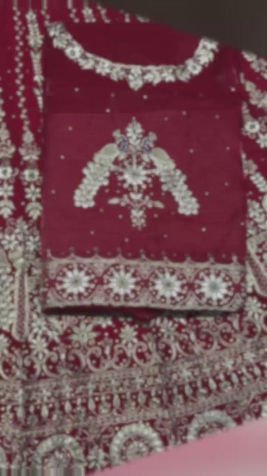 Maroon Velvet Festival wedding Rajputi Poshak with Codding work-91755