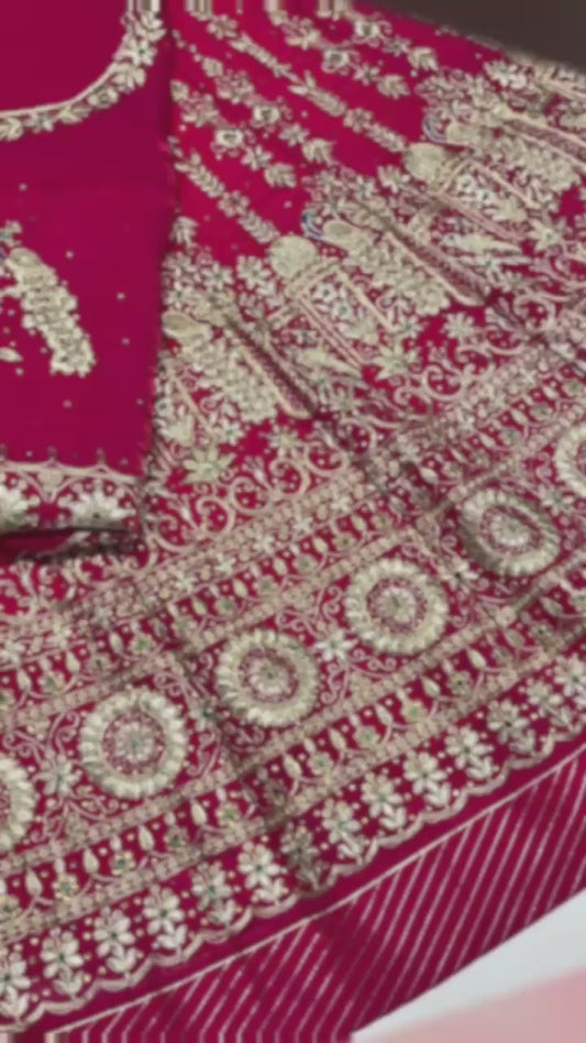 4 Meter flare Heavy Pink color Bridal Italian Silk wedding Rajputi Poshak-91763